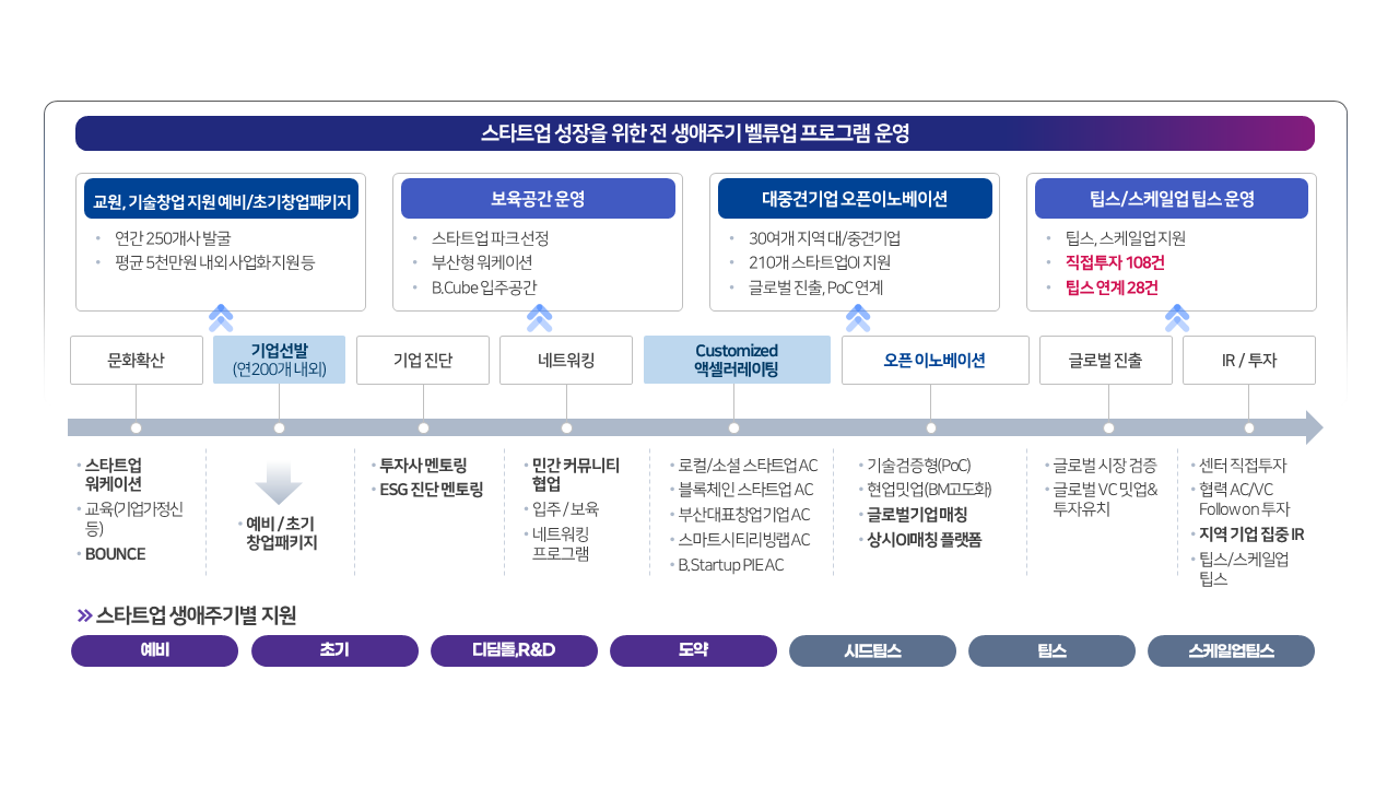 전 생애주기를 대상으로 육성 및 지원하고 있습니다.
